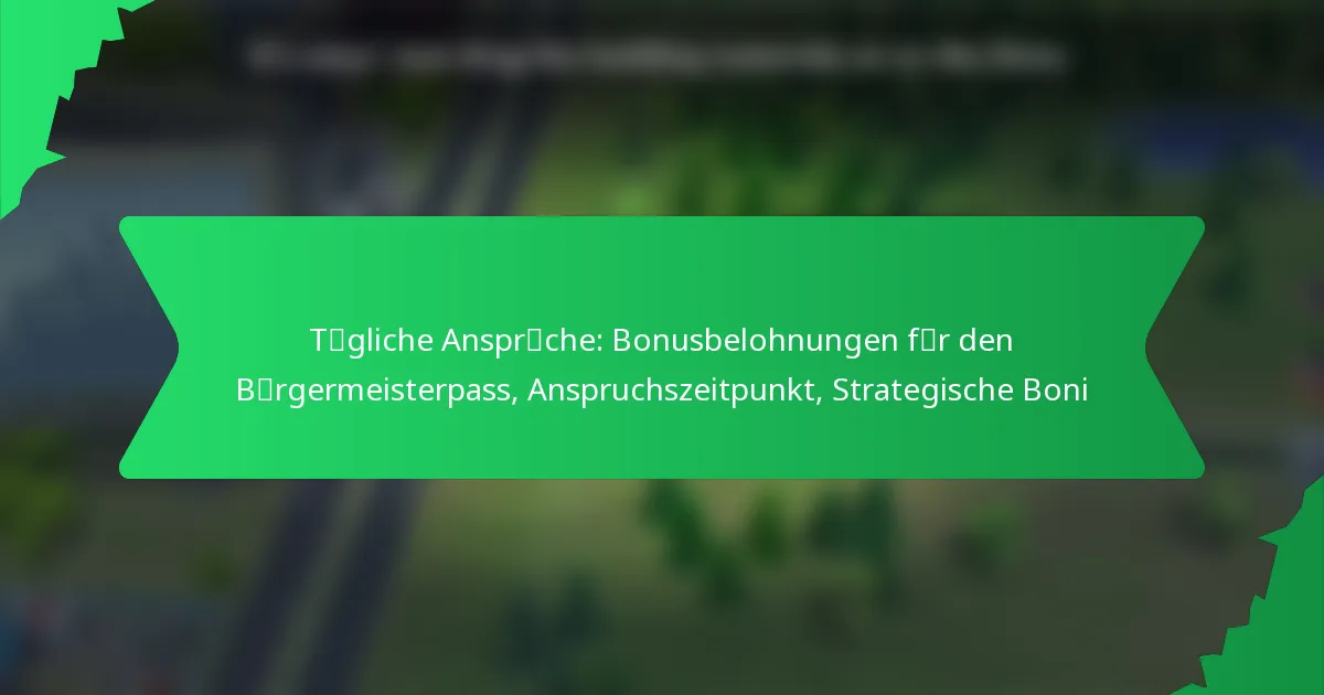 Die Bonusbelohnungen des Bürgermeisters-Passes sind Anreize, die darauf abzielen, das Nutzerengagement durch verschiedene Vorteile zu erhöhen, einschließlich exklusiver Gegenstände und Boni. Diese Belohnungen können täglich beansprucht werden, was eine kontinuierliche Teilnahme und strategische Planung fördert.
